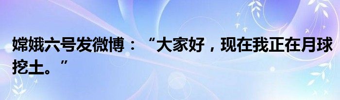 今天,@嫦娥六号月球探测器 发出一条微博,内容是 " 大家好,我是嫦娥六号,现在我正在月球挖土。"