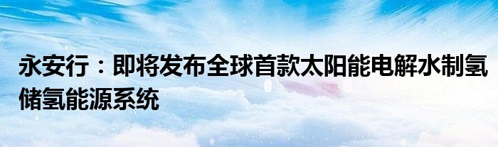 永安行:即将发布全球首款太阳能电解水制氢储氢能源系统