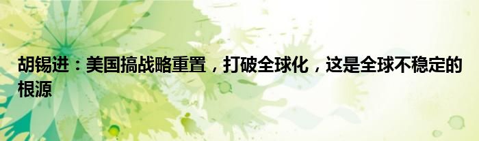 胡锡进:美国搞战略重置,打破全球化,这是全球不稳定的根源
