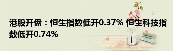港股开盘:恒生指数低开0.37% 恒生科技指数低开0.74%