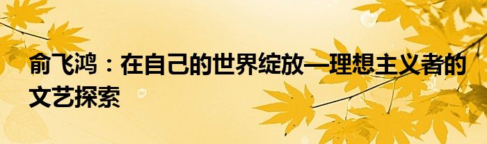 俞飞鸿:在自己的世界绽放—理想主义者的文艺探索