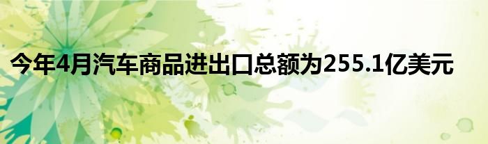 6月4日,中国汽车工业协会整理的海关总署数据显示,今年4月,汽车商品进出口总额为255.1亿美元,环比增长6.88%,同比增长7.49%。其中,进口金额54.5亿美元,环比增长3.3%,同比下降7.75%;出口金额200.6亿美元,环比增长7.89%,同比增长12.55%。今年前4个月,全国汽车商品累计进出口总额为937.8亿美元,同比增长6%。其中,进口金额211.7亿美元,同比下降10.58%;出口金额726.1亿美元,同比增长12.11%。