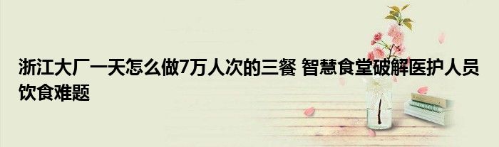 浙江大厂一天怎么做7万人次的三餐 智慧食堂破解医护人员饮食难题