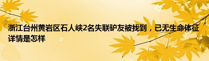 【浙江台州黄岩区石人峡2名失联驴友被找到,已无生命体征】大家可以一起来了解一下这是什么情况!