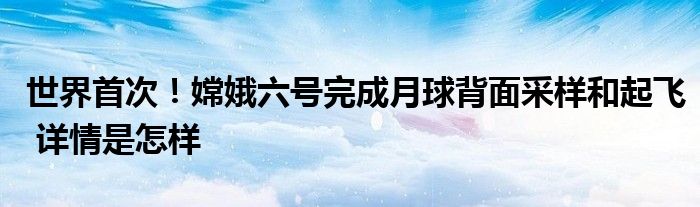 【世界首次!嫦娥六号完成月球背面采样和起飞】大家可以一起来了解一下这是什么情况!