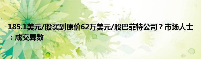 185.1美元/股买到原价62万美元/股巴菲特公司?市场人士:成交算数