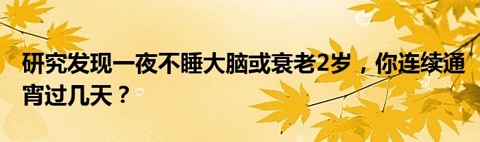 研究发现一夜不睡大脑或衰老2岁,你连续通宵过几天?