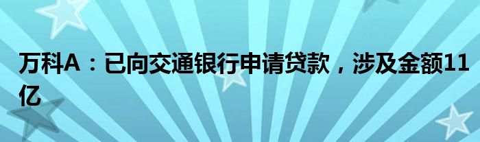万科A:已向交通银行申请贷款,涉及金额11亿
