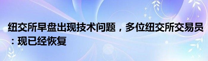 纽交所早盘出现技术问题,多位纽交所交易员:现已经恢复