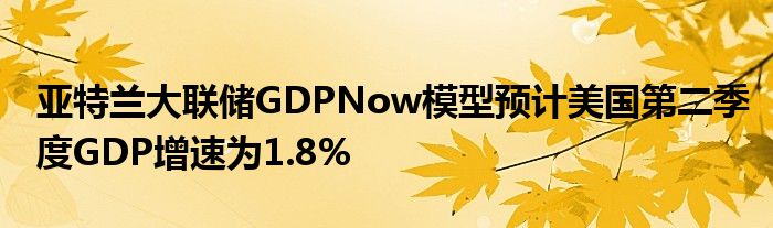 亚特兰大联储GDPNow模型预计美国第二季度GDP增速为1.8%