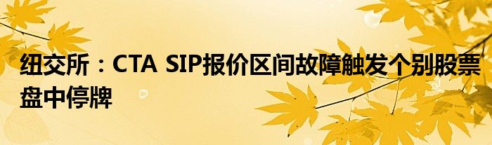 纽交所:CTA SIP报价区间故障触发个别股票盘中停牌