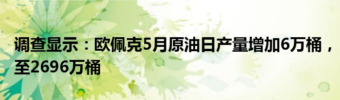 调查显示:欧佩克5月原油日产量增加6万桶,至2696万桶