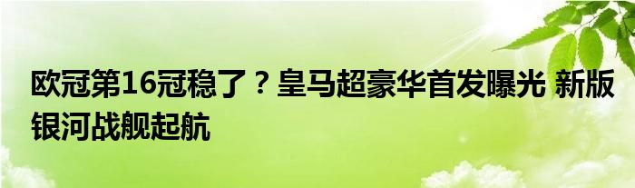 欧冠第16冠稳了?皇马超豪华首发曝光