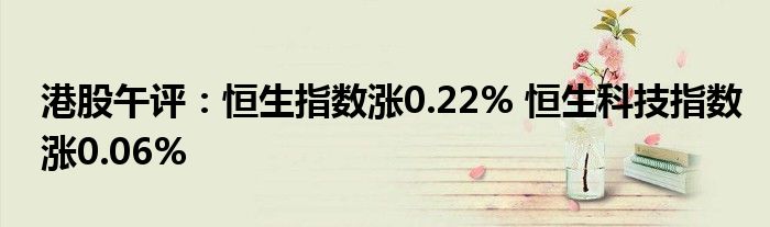 港股午评:恒生指数涨0.22% 恒生科技指数涨0.06%