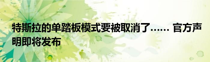 特斯拉的单踏板模式要被取消了…… 官方声明即将发布