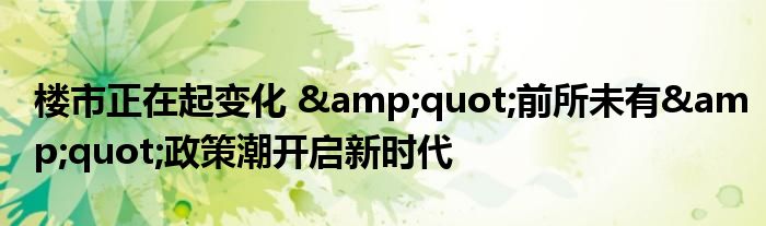 楼市正在起变化 "前所未有"政策潮开启新时代