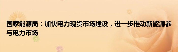 国家能源局:加快电力现货市场建设,进一步推动新能源参与电力市场
