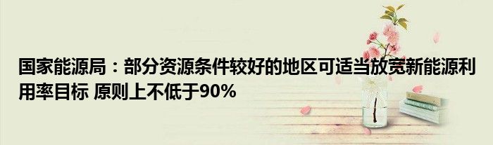 国家能源局:部分资源条件较好的地区可适当放宽新能源利用率目标 原则上不低于90%