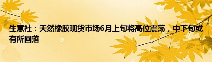 生意社:天然橡胶现货市场6月上旬将高位震荡,中下旬或有所回落