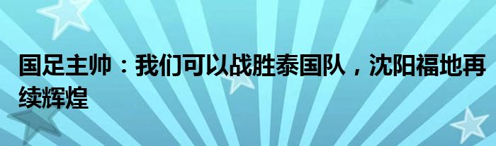 国足主帅:我们可以战胜泰国队,沈阳福地再续辉煌