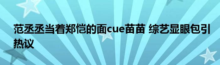 范丞丞当着郑恺的面cue苗苗 综艺显眼包引热议