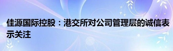佳源国际控股:港交所对公司管理层的诚信表示关注