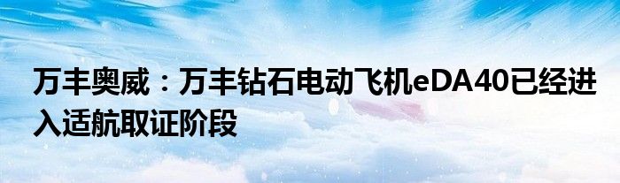 万丰奥威:万丰钻石电动飞机eDA40已经进入适航取证阶段