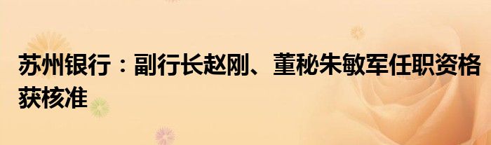 苏州银行:副行长赵刚、董秘朱敏军任职资格获核准