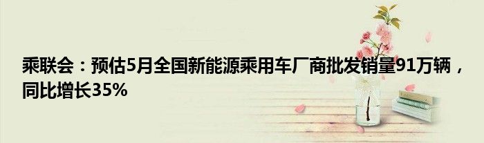 乘联会:预估5月全国新能源乘用车厂商批发销量91万辆,同比增长35%