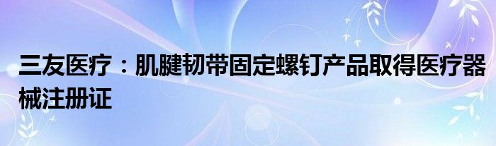三友医疗公告,肌腱韧带固定螺钉产品取得医疗器械注册证。