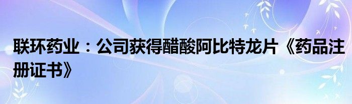 联环药业:公司获得醋酸阿比特龙片《药品注册证书》
