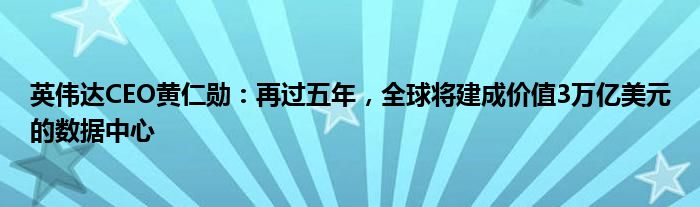 英伟达CEO黄仁勋:再过五年,全球将建成价值3万亿美元的数据中心