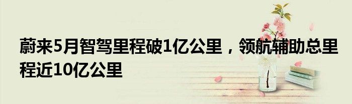 蔚来5月智驾里程破1亿公里,领航辅助总里程近10亿公里