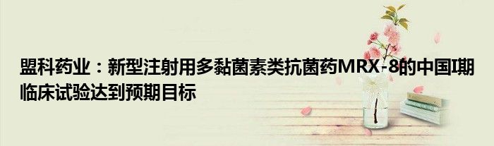 盟科药业:新型注射用多黏菌素类抗菌药MRX-8的中国I期临床试验达到预期目标