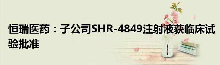 恒瑞医药:子公司SHR-4849注射液获临床试验批准