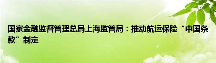 国家金融监督管理总局上海监管局:推动航运保险“中国条款”制定