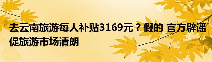 去云南旅游每人补贴3169元?假的 官方辟谣促旅游市场清朗