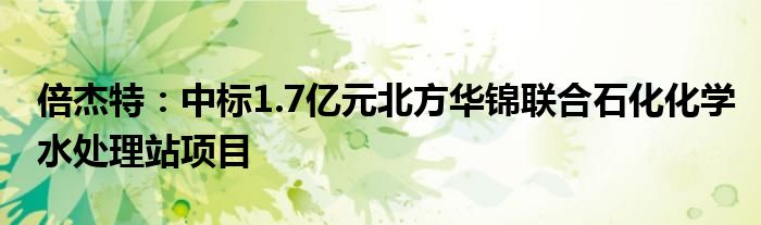 倍杰特:中标1.7亿元北方华锦联合石化化学水处理站项目