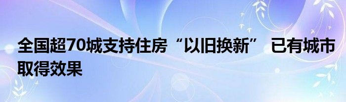 全国超70城支持住房“以旧换新” 已有城市取得效果