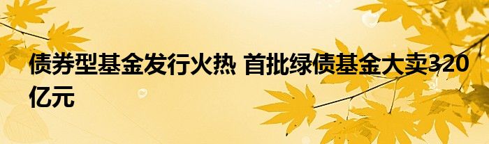 债券型基金发行火热 首批绿债基金大卖320亿元