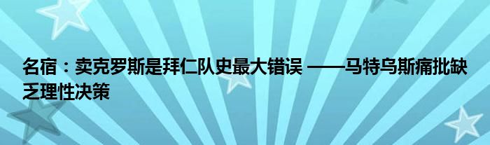 名宿:卖克罗斯是拜仁队史最大错误 ——马特乌斯痛批缺乏理性决策