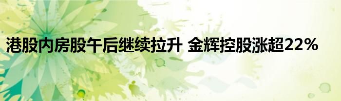 港股内房股午后继续拉升 金辉控股涨超22%