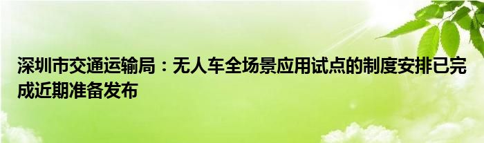 深圳市交通运输局:无人车全场景应用试点的制度安排已完成近期准备发布