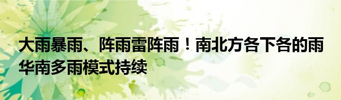 大雨暴雨、阵雨雷阵雨!南北方各下各的雨 华南多雨模式持续