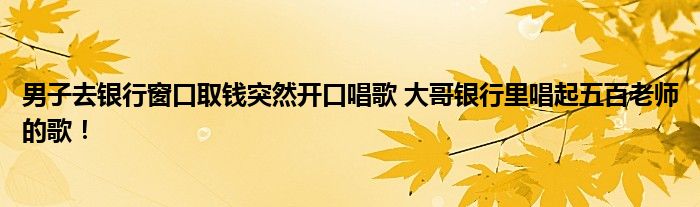 男子去银行窗口取钱突然开口唱歌 大哥银行里唱起五百老师的歌!
