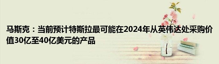 马斯克表示,当前预计特斯拉最可能在2024年从英伟达处采购价值30亿至40亿美元的产品。(财联社)