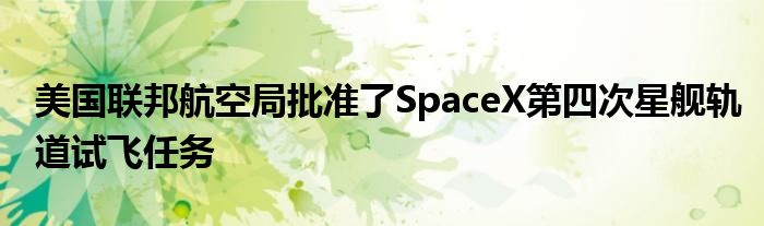 美国联邦航空局批准了SpaceX第四次星舰轨道试飞任务