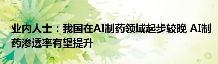 业内人士:我国在AI制药领域起步较晚 AI制药渗透率有望提升