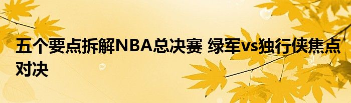 五个要点拆解NBA总决赛 绿军vs独行侠焦点对决