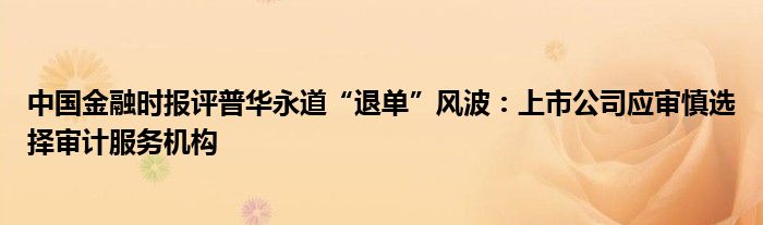 中国金融时报评普华永道“退单”风波:上市公司应审慎选择审计服务机构